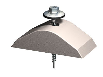 Kit d'accessoires de fixation, pour plaques de polycarbonate, dans les toitures inclinées, constitué de pièces de polypropylène pour l'appui de plaque de profil petite onde, avec le même profil des ondes, pièces d'acier inoxydable avec rondelle en EPDM pour placer sur la partie supérieure de la plaque et assurer l'étanchéité de la fixation et vis autoformeuses.