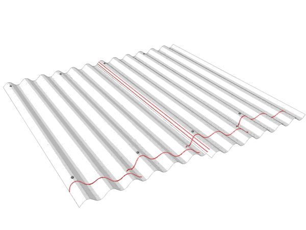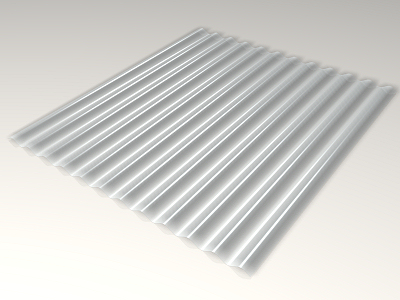 Plaque translucide de polycarbonate, de profil petite onde, de 10 mm d'épaisseur, avec une transmission de luminosité de 90%.