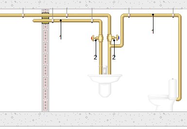 Installation intérieure de plomberie pour toilettes pour raccorder: WC, lavabo simple, réalisée avec un tube de polyéthylène réticulé (PE-X), pour le réseau d'eau froide et chaud qui connecte la déviation particulière ou une de ses ramifications avec chacun des appareils sanitaires, avec les diamètres nécessaires pour chaque point de service. Comprend vanne de passage à quart humide pour l'arrêt d'approvisionnement en eau, de polyéthylène réticulé (PE-X), le matériel auxiliaire pour le montage et la fixation à l'ouvrage, déviation particulière, accessoires de déviations.