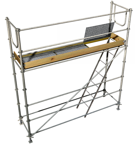 Location, durant 15 jours calendaires, d'un échafaudage tubulaire normalisé, de type multidirectionnel, jusqu'à 10 m de hauteur maximale de travail, constitué d'une structure tubulaire en acier galvanisé à chaud, de 48,3 mm de diamètre et de 3,2 mm d'épaisseur, sans duplication des éléments verticaux, composé de plateaux de travail de 60 cm de largeur, disposés tous les 2 m de hauteur, d'une échelle intérieure munie d'une trappe, d'un garde-corps arrière avec lisse, sous-lisse et plinthe, et d'un garde-corps avant avec lisse; pour l'exécution de façade de 250 m², en considérant comme surface de façade la résultante du produit de la projection en plan du périmètre ressortant le plus avec la hauteur maximale de travail de l'échafaudage. Comprend le filet flexible, type moustiquaire monofilament, en polyéthylène 100%.