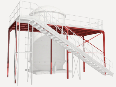 Acier NF EN 10025 S275JR, dans une structure de plateforme de travail, constituée de pièces simples de profilés laminés à chaud des séries IPN, IPE, UPN, HEA, HEB ou HEM, finition avec impression antioxydante, avec assemblages soudés sur site. | ||