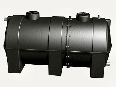 Fosse septique compacte en polyéthylène haute densité (PEHD/HDPE) avec filtre biologique aérobie, de 1400 litres, de 1078 mm de diamètre et 1860 mm de longueur, avec deux bouches d'accès de 410 mm de diamètre, bouche d'entrée et bouche de sortie de 110 mm de diamètre.