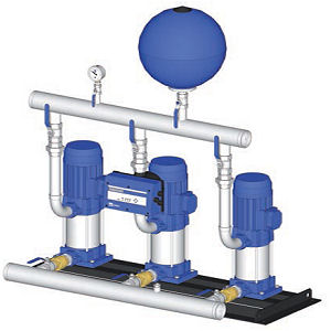 Surpresseur d'eau, à actionnement réglable par technologie Inverter, modèle HIDRO-INVERTER AP-HI-A/8-3 "EBARA", constitué de: trois pompes centrifuges multicellulaires, d'une puissance de 0,6x3 kW, corps d'aspiration et d'impulsion et contrebrides de fonte de fer, axe et chemise externe d'acier inoxydable, impulseurs de polycarbonate avec fibre de verre, fermeture mécanique, moteur asynchrone à 2 pôles, efficacité IE3, isolation classe F, protection IP44, pour alimentation triphasée à 400 V, équipement de régulation et de commande avec variateur de fréquence (pression constante), unité de contrôle Hidro-Inverter avec écran LCD (manomètre digital), bouton-poussoir pour le contrôle manuel des pompes, système de protection, fonction de réarmement automatique, indicateurs lumineux de tension, fonctionnement et erreur des pompes et clavier d'accès au menu de programmation, socle métallique, vannes d'isolement et clapet de non retour, manomètre, pressostat, réservoir de membrane, de tôle d'acier de 20 l.