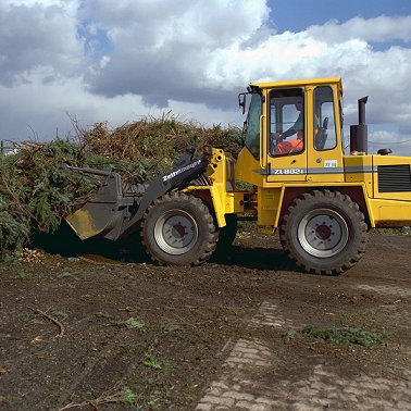 Implantation sur le terrain. Coupe d'arbustes. Remuement mécanique des matériaux d'essartage. Retrait et disposition mécanique des matériaux objets de l'essartage. Chargement dans le camion.
