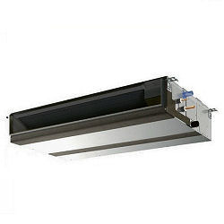 Unité intérieure d'air conditionné avec distribution par conduit rectangulaire, système air-air multisplit, avec débit variable de réfrigérant, pour gaz R-410A, gamme City Multi, modèle PEFY-M20VMA-A1 "MITSUBISHI ELECTRIC", puissance frigorifique nominale 2,2 kW (température de bulbe sec de l'air intérieur 27°C, température de bulbe humide de l'air intérieur 19°C) puissance calorifique nominale 2,5 kW (température de bulbe sec de l'air intérieur 20°C), consommation électrique nominale en refroidissement 0,032 kW, consommation électrique nominale en chauffage 0,03 kW, de 250x700x732 mm, poids 21 kg, compatible avec un système de zonage intelligent, avec ventilateur à trois vitesses, pression sonore à faible vitesse 21 dBA, débit d'air à vitesse élevée 8,5 m³/min, pression statique disponible nominale 50 Pa, aspiration d'air arrière ou inférieur et pompe de drainage.