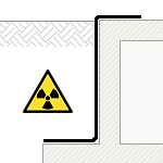 Barrière anti-radon du côté extérieur d'un mur en béton en contact avec le terrain, avec un niveau de référence d'exposition au radon 150 Bq/m³, avec complexe multicouche, de 4 mm d'épaisseur, 0,3 kg/m² de masse surfacique, constitué de deux couches de mousse de polyéthylène réticulé et deux feuilles d'aluminium, et coefficient de diffusion-perméabilité au radon 1x10-13 m²/s, non adhérée. Mise en place: avec des recouvrements. Exhalation de radon prévue à travers la barrière de protection: 0,06 Bq/m²·h. Comprend le ruban adhésif double face, pour le scellement des recouvrements.