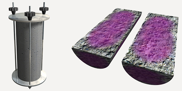 Essai pour déterminer la profondeur de carbonatation d'un échantillon de béton durci.