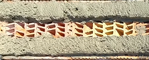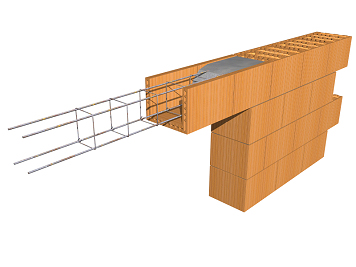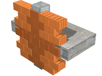 Façade simple paroi, de 24 cm d'épaisseur, en maçonnerie de bloc en terre cuite à isolation rapportée à emboîtement, 30x19x24 cm, à revêtir, avec joints horizontaux de 10 mm d'épaisseur, joint creux, pose avec du mortier de ciment confectionné sur chantier, avec 250 kg/m³ de ciment, couleur grise, dosage 1:6, fourni en sacs. Linteau en maçonnerie renforcée de briques en "U" en terre cuite à isolation rapportée, pose à joint mince, remplissage de béton de remplissage confectionné sur le chantier, BCN: CPJ-CEM II/A 32,5 - Fl - B 25 - 5/15 - E: 2a - NA - P 18-305; montage et démontage d'étai. Revêtement des abouts de plancher avec planelles thermiques en terre cuite et des faces extérieures des poteaux avec blocs découpés, placés avec le même mortier utilisé dans la pose de la maçonnerie.
