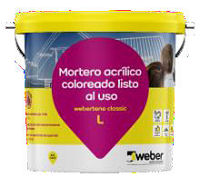 Mortier acrylique Webertene Classic L "WEBER", couleur à choisir, gamme Estándar, finition goutte, à base de résines acryliques, charges minérales, pigments résistants aux rayons UV, fongicides et additifs spéciaux. Selon NF EN 15824.