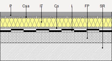 ETC260 Toiture terrasse chaude, accessible, avec revêtement de sol fixe, type inversée, pour trafic routier. Imperméabilisation avec des membranes bitumineuses, de type monocouche améliorée